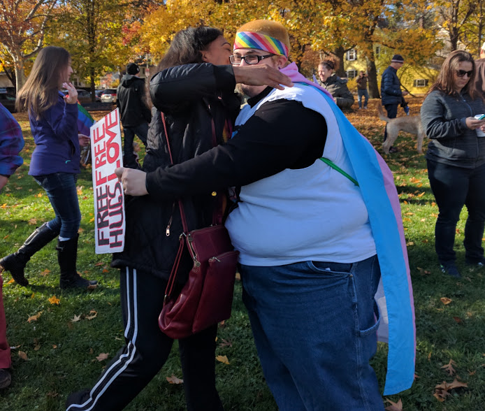 I embraced my first real post-election opportunity to do so yesterday along with my friend Janice. A gay couple who live in the Browncroft neighborhood where Janice lives had a rainbow flag on their porch. Someone set it on fire. On their front porch. Of their house. Where they live.