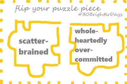 Lately when I hear me deriding myself, I try to take a moment and to look for the resilience side of the puzzle-piece. If nothing else, it’s a fun distraction from self-flagellation. For example: