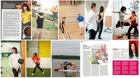 When I gave my office a makeover this summer I went through piles and piles. I found a huge stack of Brava Magazines featuring my writing dating back to 2011. I clipped each page and spread them out, covering my whole floor. I can’t find the photo I took to mark the moment, but I recreated a sample here from digital images, including photos from my “Live On The Move” humor fitness columnist days.