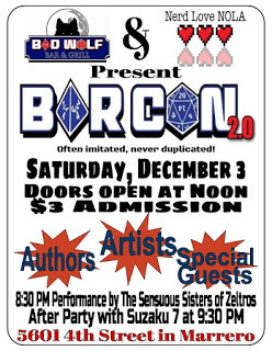 I'll be a guest author at Bad Wolf Bar & Grill's Barcon on December 3rd! I'll have bookmarks, posters, and other Lucid goodies to hand out! Be sure to dress as your favorite comic book, sci-fi, fantasy, or anime character and I'll see you there!