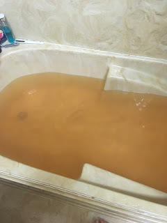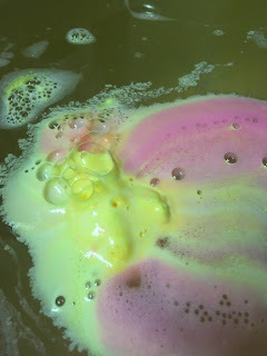 This bomb explodes beautifully. I've always been a big fan of yellow and pink, and LUSH is always true to their bomb's colors both in and out of the tub. Though it didn't chug around my tub, I was still pleased by the bomb drop. It lasted for a good while, as well; I'd say for about 5 minutes.