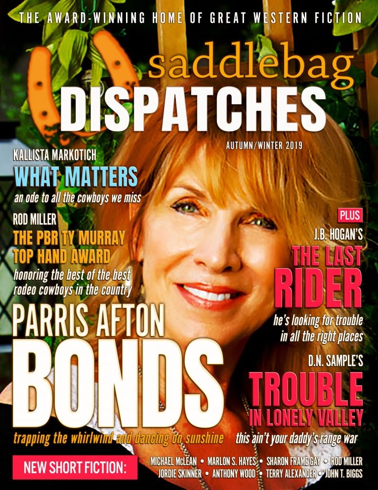 Saddlebag Dispatches has a new issue available. As always, it’s big and colorful and filled with all things Western. A few of the items in the magazine have my name at the top. A new short story, “Black Joe,” is about a wild mustang stud and his clashes with a rancher. There’s a feature article about the PBR Ty Murray Top Hand Award, and the collaboration between Ty Murray and the designer and sculptor behind the award, Jeff Wolf. My rodeo poem about how the Star Spangled Banner affects bareback riders, “Long May It Wave,” is given a beautiful presentation. And, finally, my regular “Best of the West” column features what must be the oldest of the Old West’s best towns, Taos Pueblo.If you don’t read Saddlebag Dispatches , you’re missing out on a fine publication, offering a lot of variety in its presentation of the American West, old and new. Follow the link and take a look.
