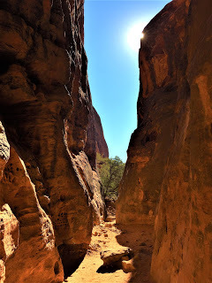Southern Utah is a red rock wonderland. Soaring cliffs. Plunging gorges. Pinnacles and buttes and mesas and canyons. There are more places that can take your breath away than you can possibly see in a lifetime—let alone a couple of days.A few weeks ago I had the pleasure of once again teaching at the Kanab Writers Conference. While I have been fortunate to be a part of several conferences in several places, Kanab is always a favorite. After the conference, we made our way across the Arizona Strip, dropped off the mesa back into Utah and St. George, then drove north of town a few miles to Snow Canyon State Park. We had been there before, and it was time for another visit. An unforgettable recollection, Jenny’s Canyon, surpassed the memory. A short, easy path off the road leads to a red rock cliff and into a small slot canyon. The photo above shows the entrance. The canyon walls, that can be spanned with both hands in places, reach skyward, limiting light to a narrow strip of sky. Much of the rock is “honeycombed” with fissures and holes and clefts and crevices that inspire wonder.It’s a small wonder, as wonders go in this part of the West. But it is still wonderful.