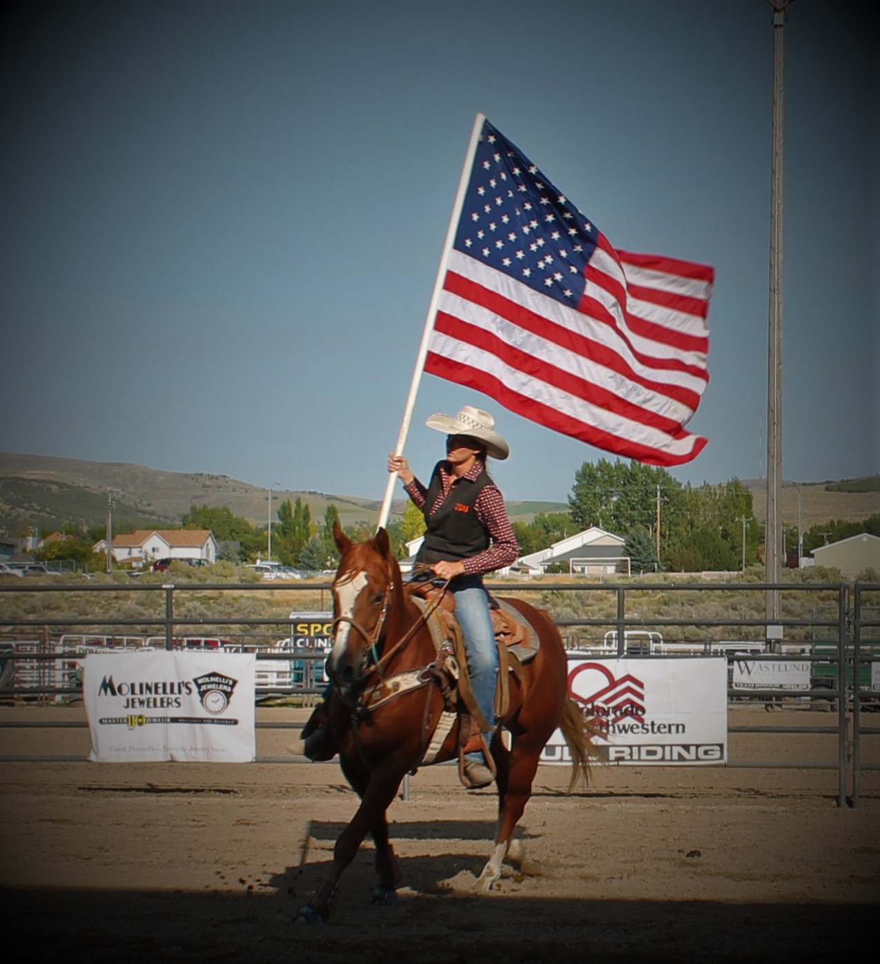 This time of year, flags fly in abundance and are celebrated and saluted in many settings.Every rodeo begins with a flag ceremony in conjunction with the traditional grand entry, with the stars and stripes flown from horseback in the arena. Men doff their hats, hold them over their hearts, and—for those so inclined—sing along with the Star Spangled Banner.It’s different for those of us who practice(d) the bareback bronc riding trade. Here’s a poem I wrote about the experience from behind the bucking chutes.