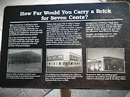 Above is aphoto I took of the bank (still standing and still a bank) with its brick facade. As you see, they are ordinary lookingbricks. But how they got there is anything but ordinary. Here’s the story, asquoted from a sign on the sidewalk across the intersection from the bank. Othersources generally agree with this telling, although you’ll see a huge differencein numbers, and numbers that don’t add up, as you read on.