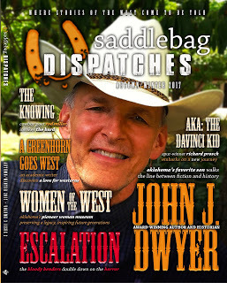 The Fall/Winter 2017 issue of Saddlebag Dispatches is now online, with a print version available as well. As usual, its pages are chockablock with short stories, articles, columns, and other reading matter that “fits under a cowboy hat,” as the editors say.In its pages you’ll find my regular column, “Best of the West,” this time featuring what I believe to be the best cowboy poem of all time, “Anthem” by the late Buck Ramsey.Elsewhere in the magazine is, for me, a real treat—a beautifully designed spread presenting a new poem I penned. “The Knowing” is built from the sights and sounds and smells experienced by a range-riding cowboy through days and nights, miles in the saddle, tending cattle, watching wildlife, experiencing sunshine and storms, and the comfort of campfires. There’s even a reference to the poem on the magazine’s cover (above), claiming, in one of the most extreme over-statements of our time, “Cowboy poet Rod Miller invokes the Bard.”Magazines written for Western readers become rarer by the day, so don’t miss a chance to read—and support— Saddlebag Dispatches .