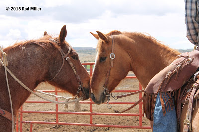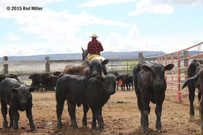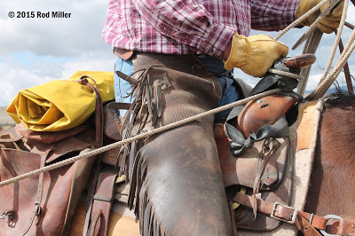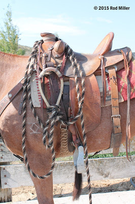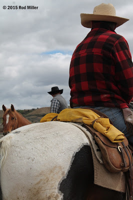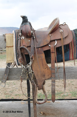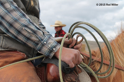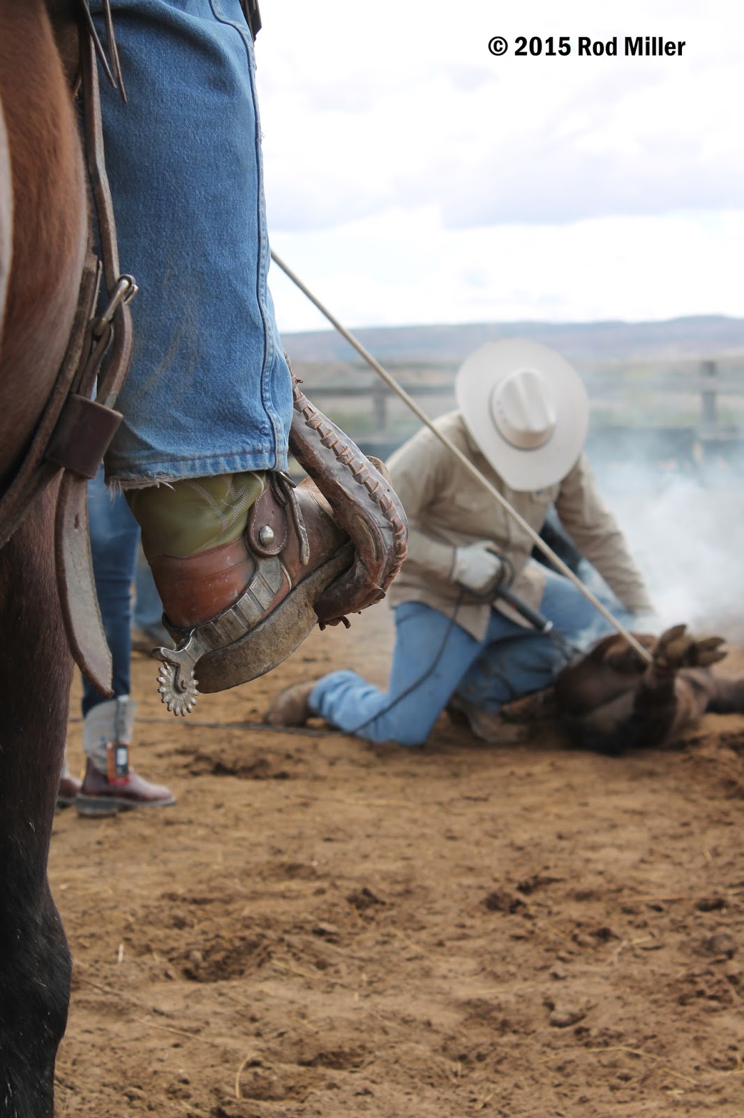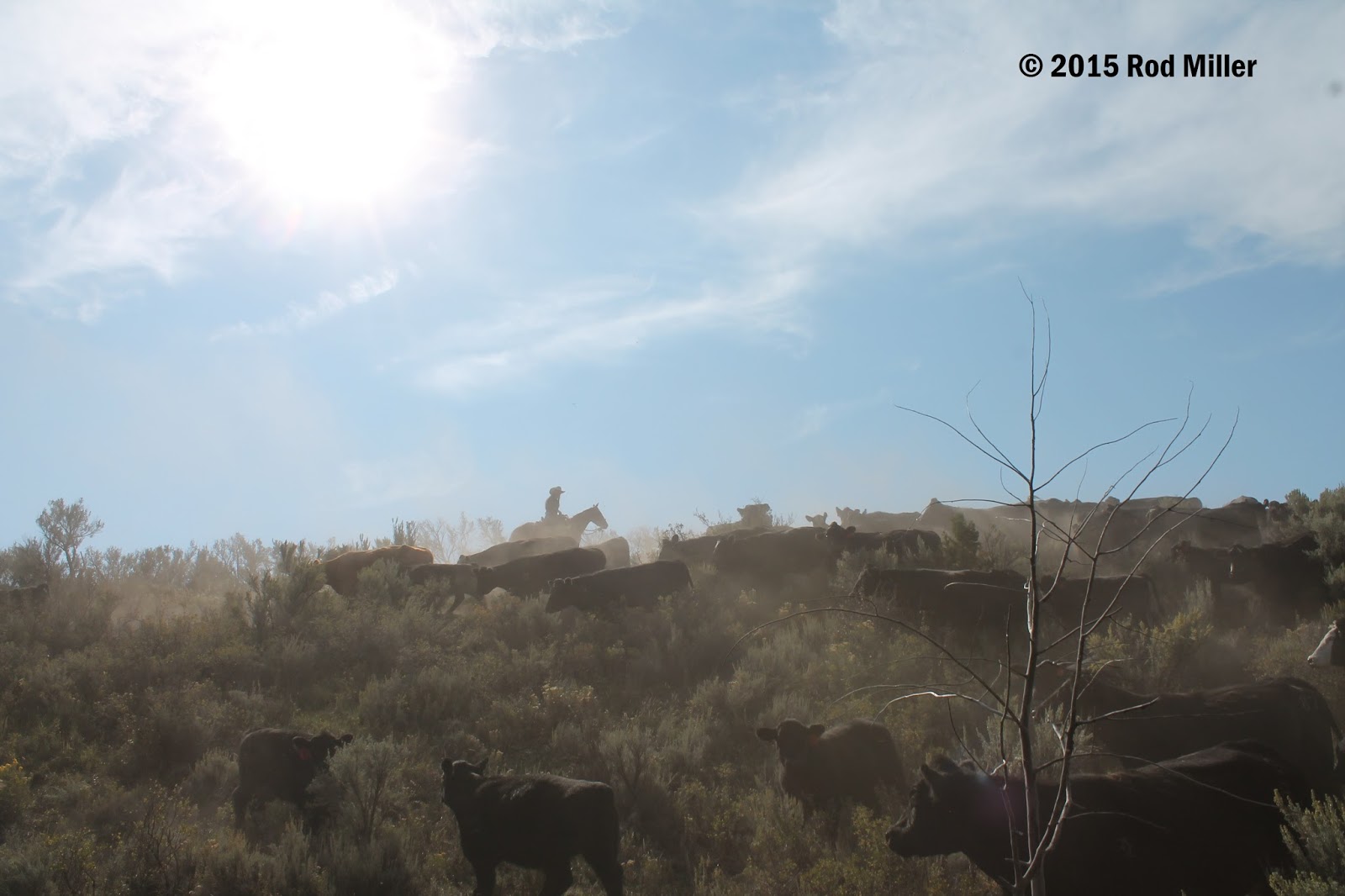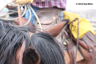 At the ranch.A skyline shot of gathering cattle off Midnight Creek starts this selection, followed by several pictures from a branding. The set ends where it started, with an Idaho ranch horse with a mecate and hackamore hanging from the saddle horn.