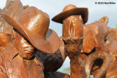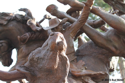 At the rodeo.The behind-the-scenes rodeo photos were taken at a high school and a college rodeo. Then there are a couple of shots representing success. Finally, a pair of detail pictures of Jeff Wolf’s monumental sculpture “Rodeo” that I think capture the art’s dynamic action.