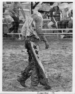 A misadventure, recorded for all time through Jim Fain’s cameralens. The sad thing is, this photo is my favorite from the album documenting myrodeo career. Some cowboy, huh?