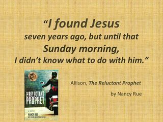Speaking of, well, speaking . . . it's SO God that when I went looking through The Reluctant Prophet for Hank's next wise words, I came to the scene, around page 243, 244, where Allison is processing with Hank how she's supposed to get Geneveve, the prostitute she has taken in, to go to NA and start dealing with her addiction. Allison has been loving Geneveve, taking care of her, showing her that God loves her, and still she refuses the help she needs. The conversation between Hank and Allison goes like this: