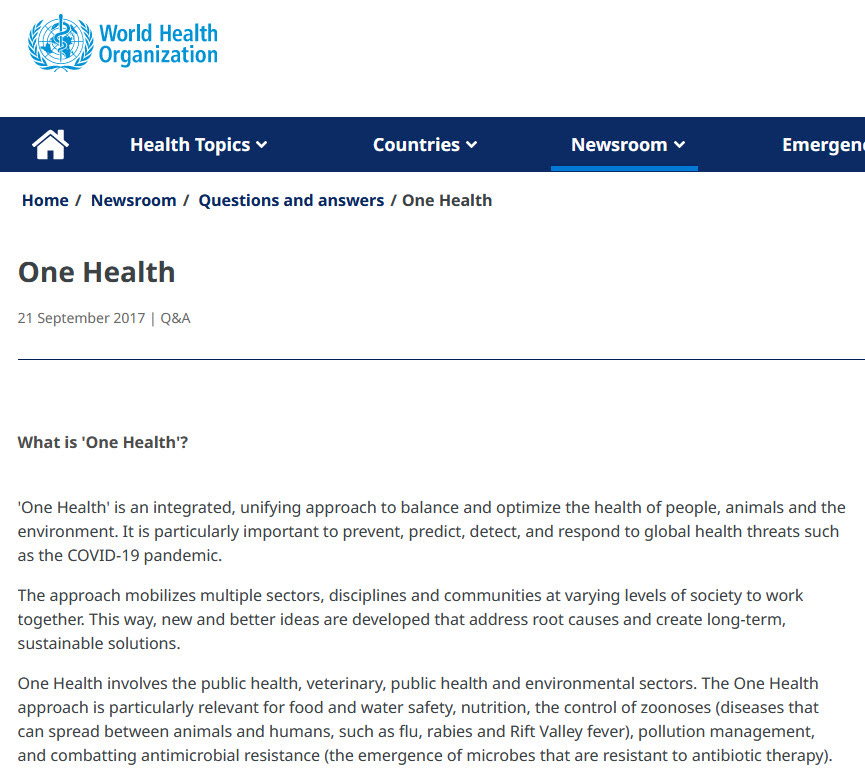 While the WHO pushes forward with their global pandemic agreement (meeting still going on), do not forget ONE HEALTH, a UN/WHO/WEF/NIH/CDC and others continues to march forward – actually more diabolical and more dangerous that the pandemic treaty: