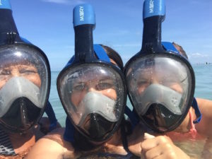 Three generations of snorkelers. Darth Varder-ish masks, busy fish, and Captiva sand.