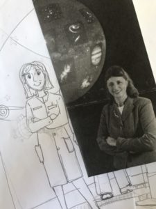An early sketch of Dr. Jennifer Wiseman from the illustrator, Beverly Wines