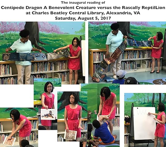 Why? How? This leads nicely into the second exciting event: I will once again be presenting at Charles Beatley Central Library’s Story time in Alexandria, VA, on Saturday, May 19, at 11am! I will read book 2, Centipede Dragon A Benevolent Creature versus the Rascally ReptilLion, and maybe even bring back the Magical Scale Game, since I haven’t done that one in a good long while!