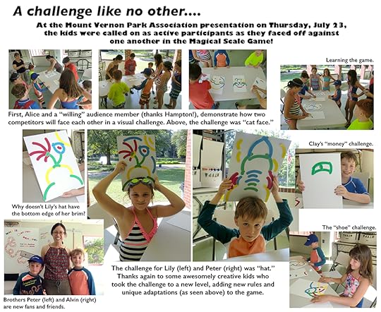 Yesterday afternoon’s presentation was yet another chance for me to beta test a new format for the Magic Scale Game, and here are two of my willing participants. Kids will always surprise you with their depth of creativity. Next week’s post will give the usual summary of our event.