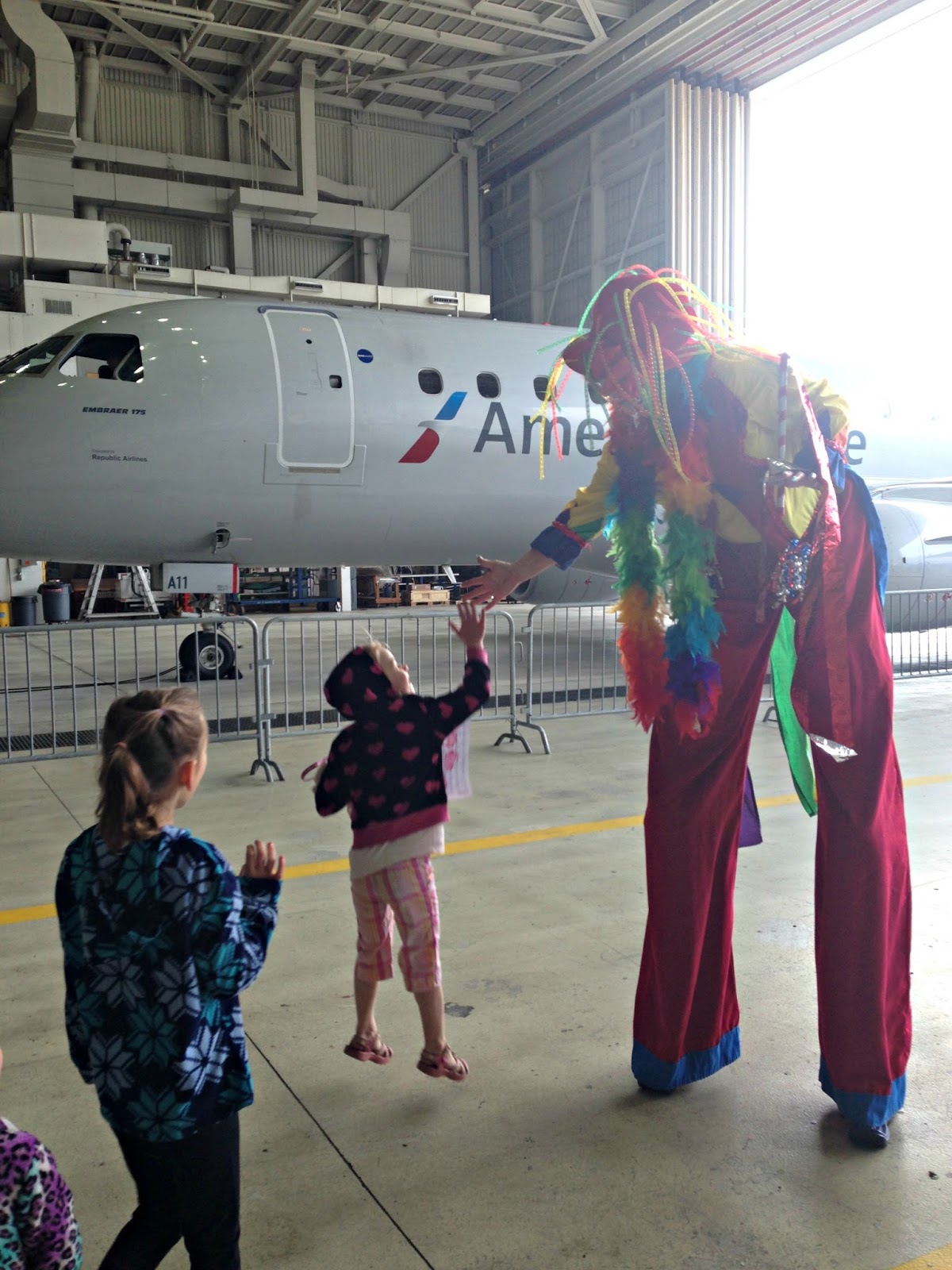 High-fiving the lady on the stilts.Since the event was to raise money for seriously- and terminally-ill children who are to receive a special, memorable gift (like meeting their favorite baseball team...