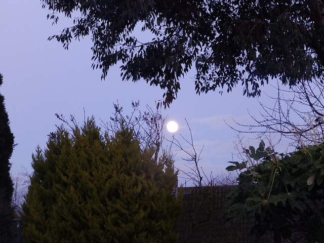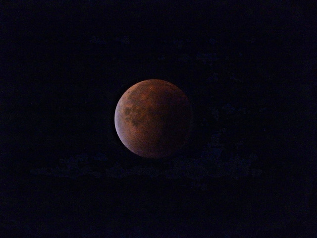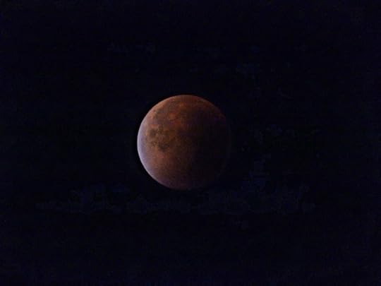 Here's one I took (much) earlier of the eclipsed blood supermoon back in 28th September 2015I catch her earlyBetween wake and wash(Me, not her!)Slipping down sassy(Her, not me!)Swanning through sycamore twigs In her lap-danceWay way west.I’m such a lightweight,Not up to the occasion,I stand watchingAt the foot of the bed,Shivering in woolly shawlOver my PJsMittens missing fingersThermal hat half over one eyeWhile silver she stoops to stun.