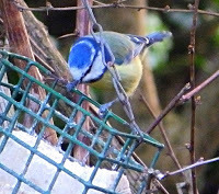 Drooper the Woody with the Wonky WingYesterday, none of the tit family arrived during the allotted hour. Today, a trio of Blue Tits, a pair of Great Tits and a solitary Coal Tit got their attendance marks, unlike the little clan of Long-Tailed Tits I’d heard twittering away every day last week. No doubt the ‘Lollipops’ had been checking their diaries so as to co-ordinate their efforts not to get caught on the census. All the better for staying under the radar uncounted, getting up to any merry mischief they might choose, without human knowledge. The same goes for the resident Wren, who is heard but not seen most of the time, and was certainly not going to make it easy for me during the BGBW.