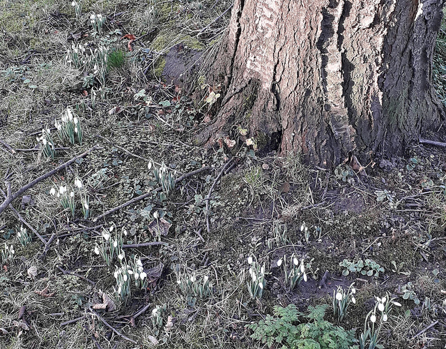 Your dangling skull fixates on the damp path,Rooted yet restless, nipped by a node of green,Trapped in last year’s leaf loam from the cherry tree.You are Snowdrop. I am Robin.