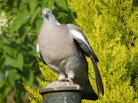 But just as I was leaving to fly back home for seed,This little bird came buzzing by, which I really didn’t need.He didn’t seem too bothered about resting in a tree,I called “Do Two Coos, Taffy!” but he didn’t answer me!