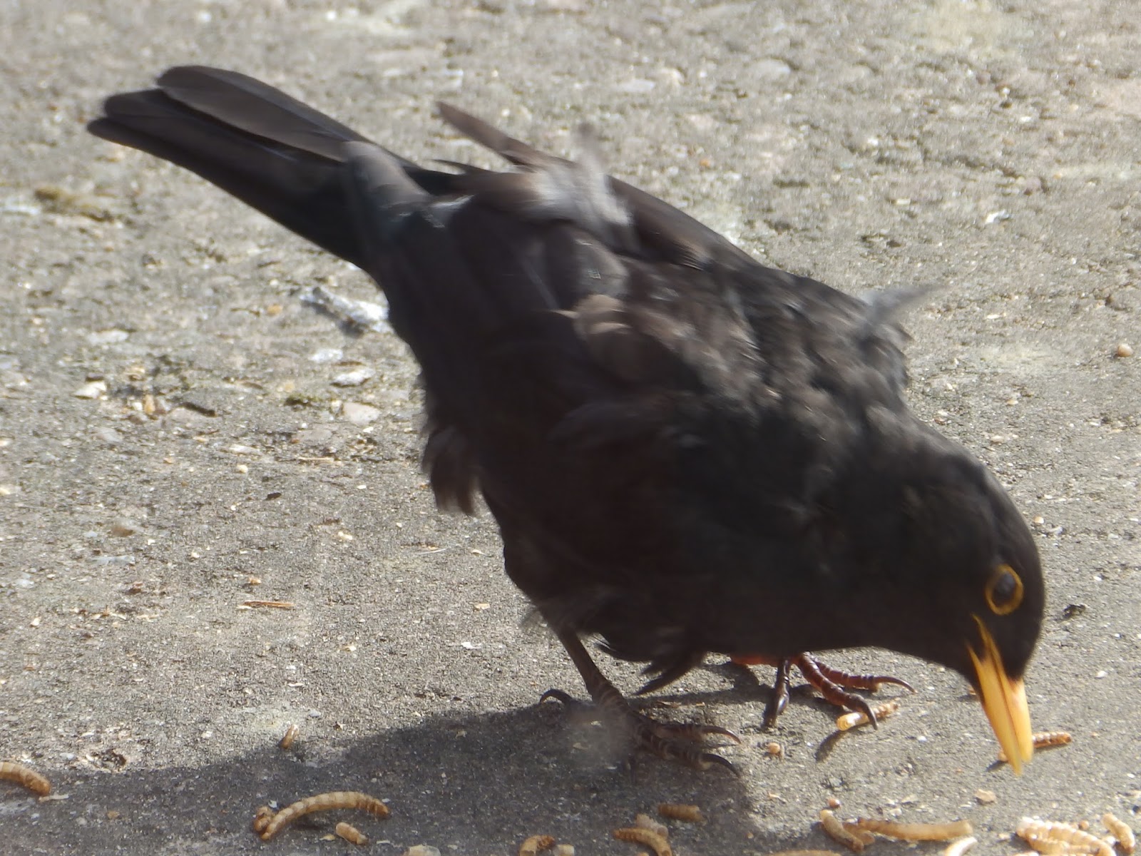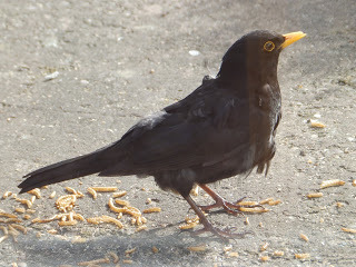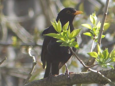 Scruffy the Blackbird rests for a second in the Lilac while Mrs S does her shift gathering baby food