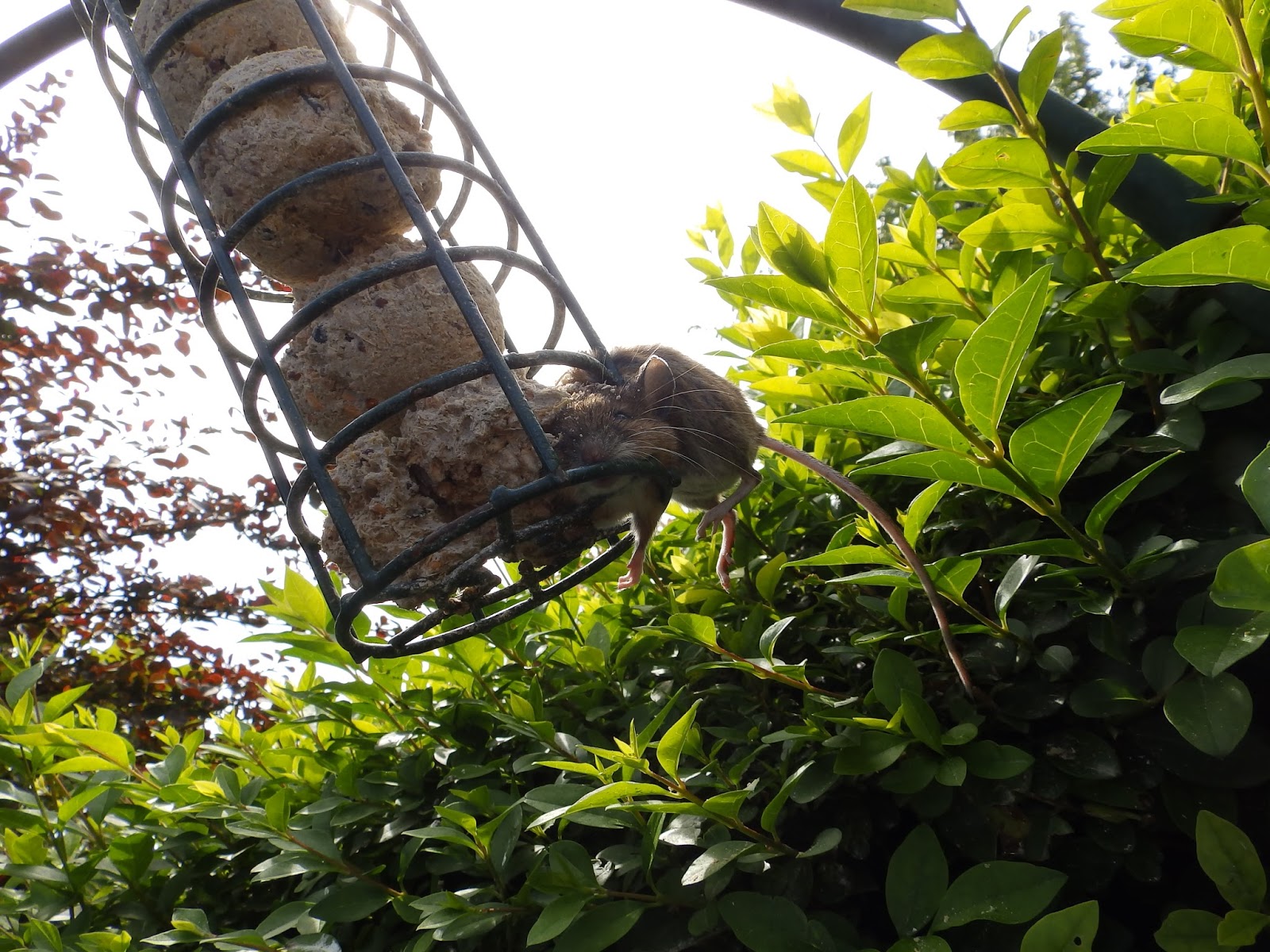 Still have no idea how this little rodent ended up dead in a hanging feeder. I suspect it might have been dropped by an owl or other flying predator.