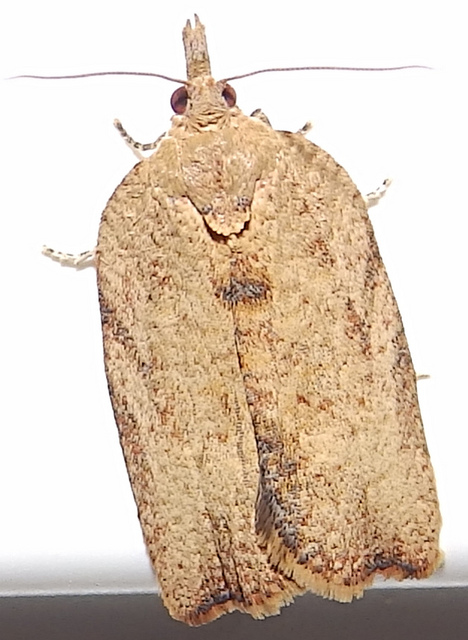 Female Light Brown Apple Moth (Epiphyas postvittana)on inside of front door (no, really! Inside, though!)