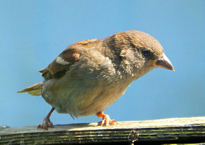 With the window open, I can see sparrows giddying along the eaves, inches from my upturned eyes, skippy shadows fluttering, overwound clockwork automata driven by the ceaseless chivvying of their hungry youngsters from their playpens in the roof.