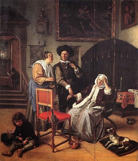 Jan Steen "Doctor's Visit" oil on panel, 1661-2, Victoria & Albert Museum (Kooikerhondje in right foreground on cushion)A faithful little working dog, bred to work in harmony with his human, entrancing wildfowl at the eendenkooi (duck cage). Piper's a bit special, as you'll discover, inseparable from Bram in his stewardship of the peat moors, at the decoy or in the pinfold. Almost human, you might say.
