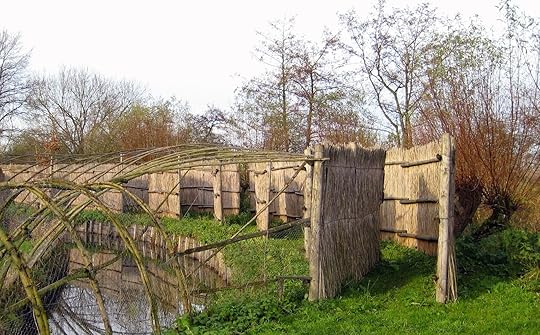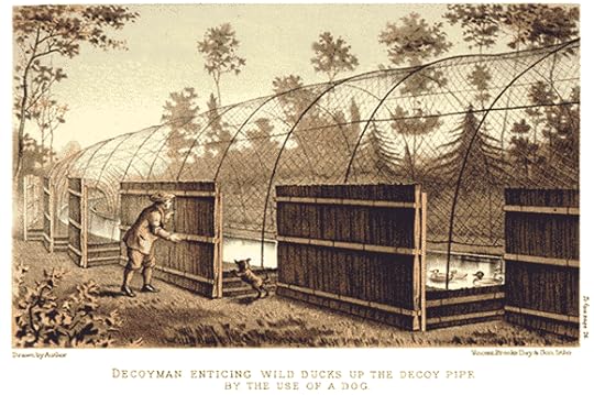 Screens in a duck decoy in nature reserve 't Broek near Waardenburg, the Netherlands (China_Crisis)"Bram gave a low whistle to the dog, that sounded every bit as natural as the calls of the upland waders, bleak and wistful. Then Piper sprang over the succession of low dog-jumps . Further along the pipe, he disappeared from sight, backing away, drawing the wildfowl onward up the pipe. They seemed fascinated by the little hound. Beady eyes winked in the moonbeams shining down. Milky light turned everything into a mysterious pageant in which Thirza, to her utter delight and astonishment, found herself taking her place.It felt so natural to her, she hardly realised how Bram was guiding her with his eye. Thirza found she understood the signals that passed between man and dog, even though the meanings behind the strange names and words were lost in the mists of time."