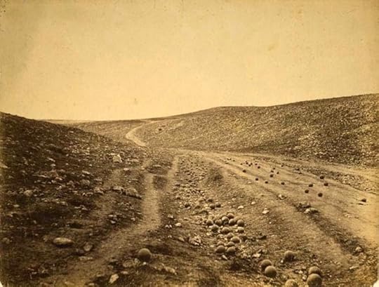 This photo was taken after the Charge in 1855, the year the novel is set, by Victorian photo journalist Roger Fenton, showing the cannonballs still strewn along the infamous "Valley of Death".