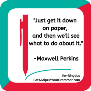 No matter how you’re using your words, in emails or essays, poetry or presentations, you’ve got to start somewhere. Maxwell Perkins, the book editor best known for the writers he discovered including Ernest Hemingway, Thomas Wolfe, and F. Scott Fitzgerald, once said, “Just get it down on paper, and then we’ll see what to do about it.”