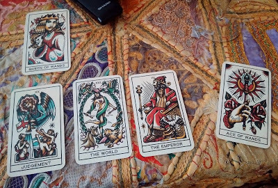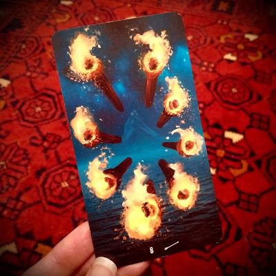 So. I knew I wanted to write a scene about a tarot reading, but it felt too contrived if I were to hand-pick the cards myself. As the designer of the story, I obviously could've just selected the tarot cards with meanings coinciding with exactly what I wanted to convey. But where's the fun in that? If there's one thing I've learned about the tarot, it's that it's a lot wiser than me--even if it's only unearthing answers that I already know anyway! Sometimes we don't consciously know what is best, even if on some subconscious or unconscious level we do. So, I decided to leave this one to the cards and, honest to God, shuffled and drew a few at random, with the intention of unlocking the message my protagonist, Ellie, needed to hear.