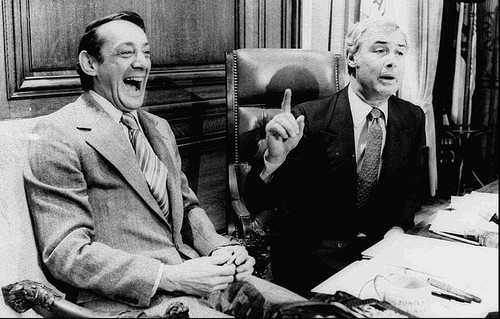 Supervisor Harvey Milk (l) and Mayor George Moscone (r)