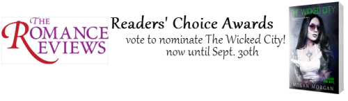I’m happy to announce that The Wicked City is up for nomination at The Romance Reviews Readers’ Choice awards! There’s a whole process that must unfold before the winners can be picked, so I’ll explain.