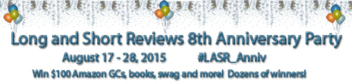 By the way, today I’m part of Long and Short Reviews 8th Anniversary Party! Come on over and enter to win TONS of stuff, including $100 Amazon/B&N gift cards!