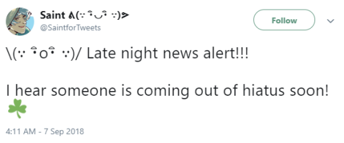 WE’RE COMING BACK TOMORROW! THURSDAY! 9/13! SURPRISE!!