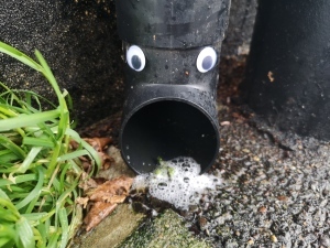 To get to the utility room and the freezer we have to go outside into the pissing rain, round the side of the house and in through the back door. To put the cat to bed … well … he’s having to sleep in another room. He’s doing really well—because cats don’t like this kind of stuff but he hasn’t run away—although I suspect he’s not enjoying it. There were many set backs. It was meant to happen two weeks ago but other jobs over ran and the chap couldn’t get to us until this week.