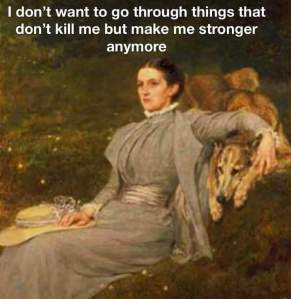 I do not want to turn into the kind of person people hide under parked cars to avoid. I don’t want to be the dear woman my mother used to hide in the coat cupboard from (she was lovely but she was enduring very tough times and she talked soooo much).