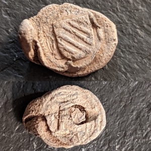 The fields were all on the same huge farm, so despite the fact they were releasing some new land to detect on the Sunday, I bugged out and went to a dig that a member of my club was having on his permission. It was the best decision ever, light sandy Norfolk soil and land that I knew. I found two long cross pennies, although one is almost blank, a Tudor button and a gorgeous cloth or bag seal … probably a cloth seal to be honest. I’d cautiously put that as Tudor, too, or possibly 17th century. I’ve had the little o-ring off the back and I’ve found the fronts of these seals but this is the first one I’ve found that was complete.