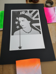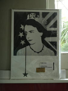 Pure Evil print … Yes.It was only a small exhibition really, but it took us well over an hour to go round. At the end there were art works for sale and yes … you guessed it. I decided I’d buy one. Except when I looked through, a lot of the prints in my price range just kind of didn’t speak to me … except one. I decided to think about it. By the time I got home I knew I was going to go and buy it, so I turned straight round and went back up the hill. Picture, or at least print, procured (12 of 100) I then went straight to the art shop in Bury to get it framed. That would take 6 – 8 weeks. Ah. Bit too long that. I paid for them to cut a mount in black card for a 50 x 70 frame and took it home where I thought I had a similar sized frame of my own.