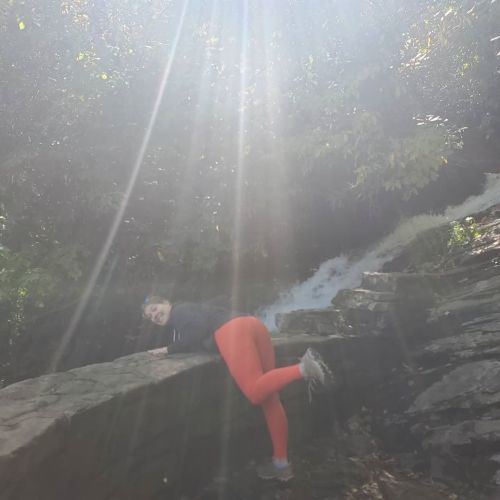 Mountain times are good times. #bmoreoutside #cutebutt #belle #blueridgeparkwaync (at Flat Top-Fallingwater Cascades Trail)