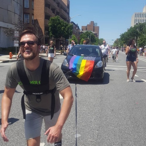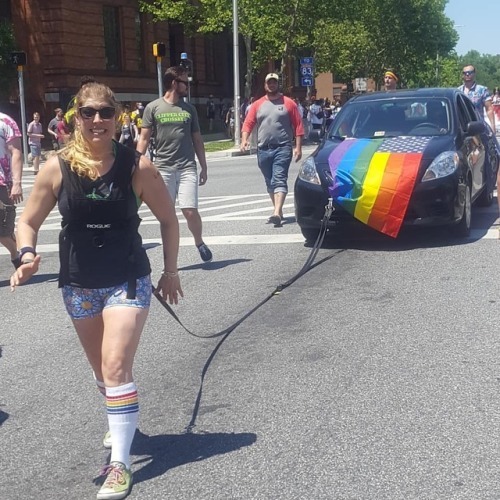 Clipper City Crossfit does #pride while pulling a car. Proud of My gym and my city. #bmore @pinkglitterybrain @clippercitycrossfit @cindabelle04 @joelbobeck (at Baltimore Pride)