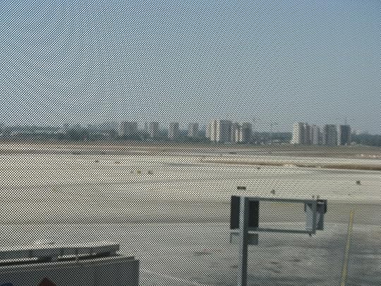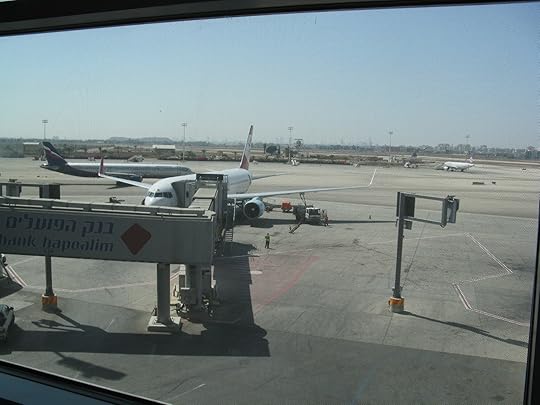 View from Ben Gurion Airport, IsraelWe will disembark from the plane, walk down a long hallway (with glass windows offering some visibility to the area) and then down a spiral ramp towards the main terminal. We will know we arrived at the main part of the building when we see the Mezuzah.