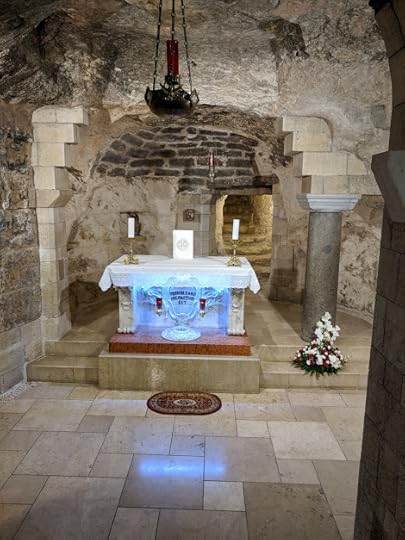 The house where Mary met the Angel The church is interesting, because it contains relics of Nazareth’s past. In the middle of the church there is an old house. This is the supposed home where Mary lived with her family, and the place where the Angel spoke to her. The church is inspiring. I have more pictures of the church on the KosherCopy facebook page. (While you are looking, please ‘like’ the page.)
