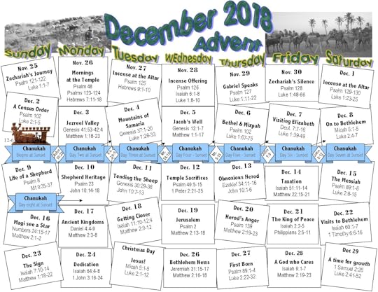 I have provided two or three resources to help people accomplish this task. First, I have developed an calendar of Bible readings (one prophetic Old Testament reading, and also a New Testament reading) that I have placed on a calendar to be found under the Advent tab on my website, www.KosherCopy.com