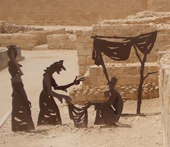 Abraham met three men at his tent Take for instance the day that three men show up at Abraham’s tent in Genesis 18. In traditional Bedouin hospitality, Abraham says, “Let a little water be brought, and then you may all wash your feet and rest under this tree.” after the traditional informalities, one of the men asks, “Where is your wife Sarah?” and follows up with the statement, “I will surely return to you about this time next year, and Sarah your wife will have a son.”