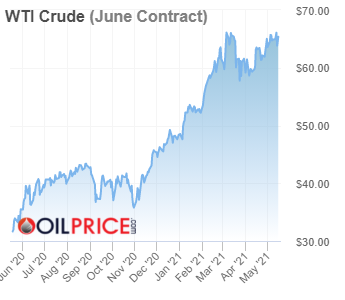In doing my weekly review of markets and listening to podcasts, I came across an interesting trade setup, given the current market environment that seems to favor higher and more persistent inflation than perhaps what some market participants believe. There are those, of course, that believe the inflation we are currently seeing is transitory and you only need to look at several key commodities that have fallen off their recent parabolic highs (i.e., copper and lumber), although they continue to remain at elevated levels relative to last year - lumber is still up 83% over last year's price, copper is still up 49% from a year ago. Oil is the one notable exception to the trend, its price continuing to rise steadily this year from last year's lows, the chart showing a very bullish trend: