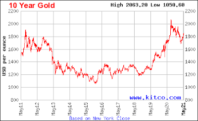 GoldAt the same time, major stock market indices continue to make all time highs. Inflationary periods historically tend to favor commodities ("hard" assets) over financial assets like stocks and bonds: