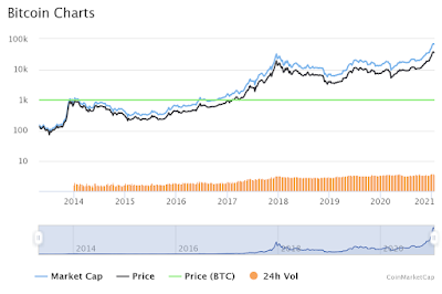 2021 might just be a big year for alternative investments. These include a broad range of investments and many people define these differently, but for me alternative investments include cryptocurrencies, precious metals and royalty assets. Crypto As many of my long term readers know, I am focused solely on Bitcoin as a cryptocurrency investment. If you're interested I recently updated my crypto ranking here. This is primarily due to Bitcoin's dominant market capitalization compared to the other cryptocurrencies, acceptance as a commodity investment by the regulatory authorities, rising institutional interest and tremendous liquidity. In reviewing my portfolio I would have to say my small stake in Bitcoin has clearly outperformed all of my other investments this year and I intend to continue to hold and grow my position through small monthly purchases just as I have been doing all along. I expect more volatility in the future with Bitcoin and certainly some strong pullbacks, but long term I see this as a great hedge against inflation of fiat currencies.
